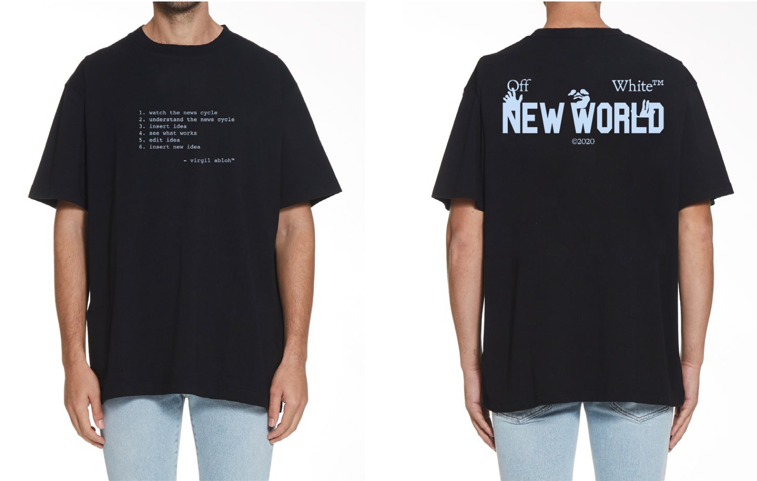 Three limited edition T-shirts via. a collaboration between Jenny Holzer and Virgil Abloh were sold to benefit Planned Parenthood Los Angeles.